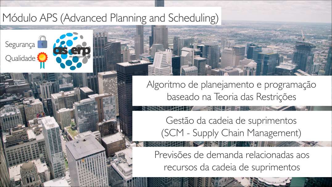 No ERP Cloud de 3ª geração da CIS-ERP cada módulo possui embasamento em técnicas e conceitos descritos em trabalhos científicos, no módulo APS que se refere à Gestão da cadeia de suprimentos (SCM - Supply Chain Management) entende-se que SCM é a incorporação do planejamento e gerenciamento de todas as atividades envolvidas desde a origem das aquisições, conversão e todas as atividades de logística. Ela ainda inclui a coordenação e colaboração entre todos os membros da cadeia. Os sistemas APS passam a assumir o projeto e parte do planejamento da cadeia, porém sem substituir o sistema de gestão ERP e sim ampliando seu escopo.