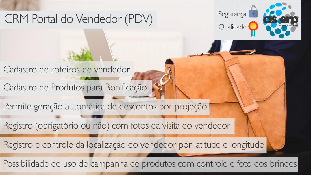 No ERP de 3ª geração (em nuvem) da CIS-ERP o Portal do Vendedor foi desenvolvido (com base no conceito de CRM*) para automatizar e aumentar a eficiência dos processos de vendas dentro das organizações.